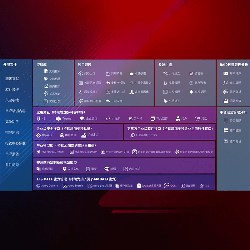 医疗器械产品上市前,,,要熟悉严格与繁复评审标准,,,整理分析监管机构指导文件中的海量信息。。。企业急需一个智能化解决方案,,,,提升知识管理效率,,,提高评审通过率,,,,以提升其市场竞争力。。。